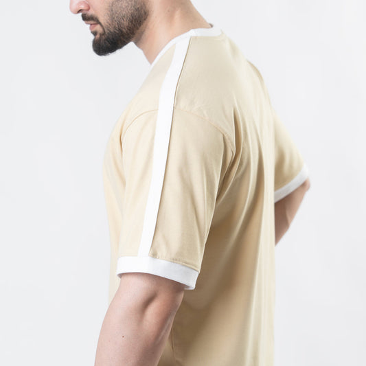 Beige Oversize Ringer T-Shirt with White Panels