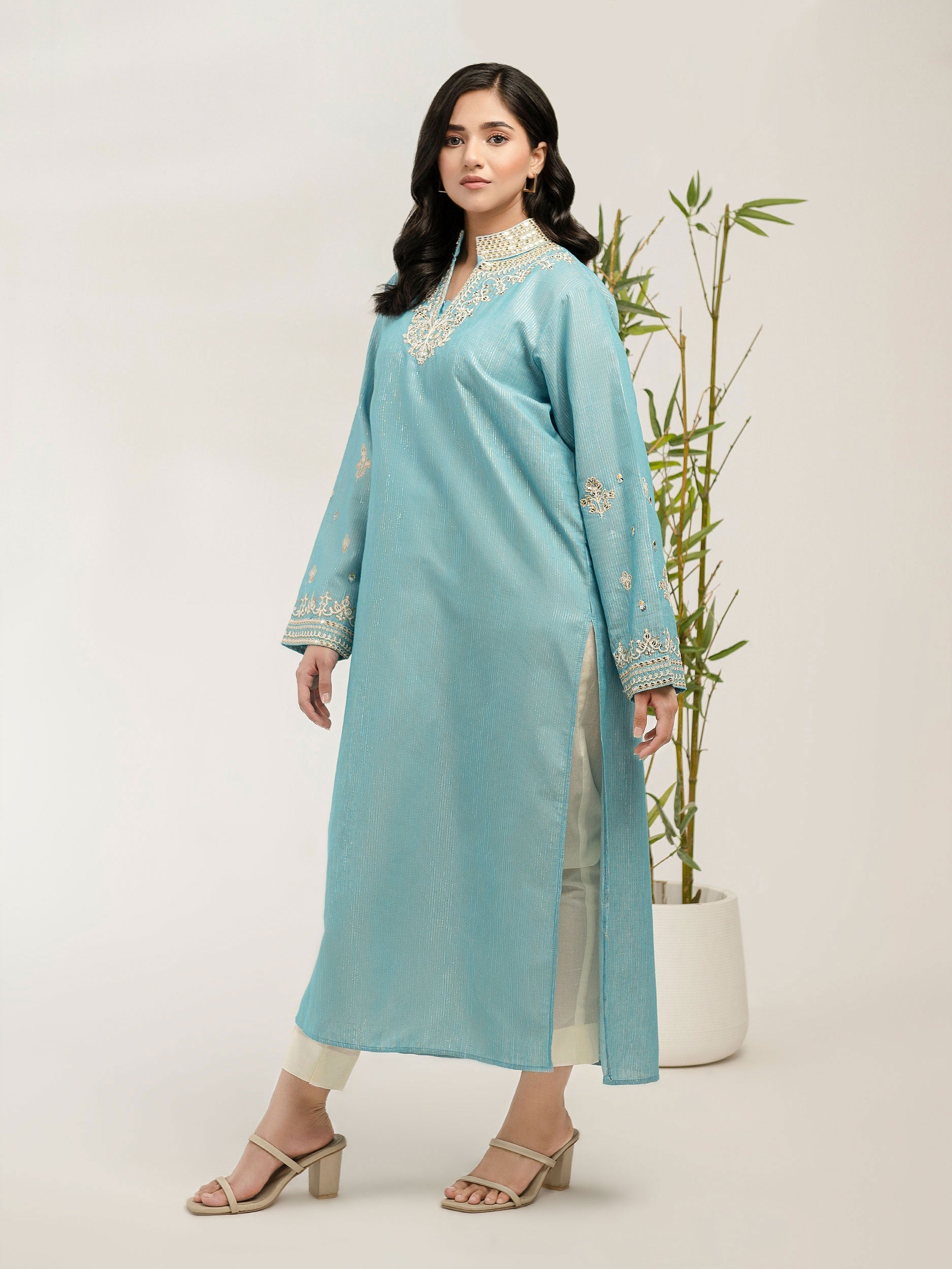 - Dyed long shirt with sequin, thread and tilla embroidery